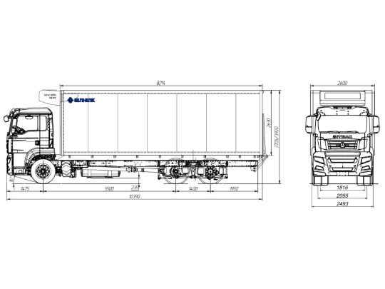 КУЗОВ Кузов-фургон SUNHUNK из сэндвич-панелей 45м3 Кузов-фургон из сэндвич панелей. Внутренний размер кузова 8050*2450*2400 мм Толщина стенок: боковых - 60мм, пол - 136мм, потолок - 90мм, передняя панель и задние двери - 80мм Фиксаторы груза с направляющими, дверной занавес из ПВХ, защитная пластина 300мм Гидравлический грузоподъёмный борт 1,5т Холодильное оборудование автономное Carrier S850